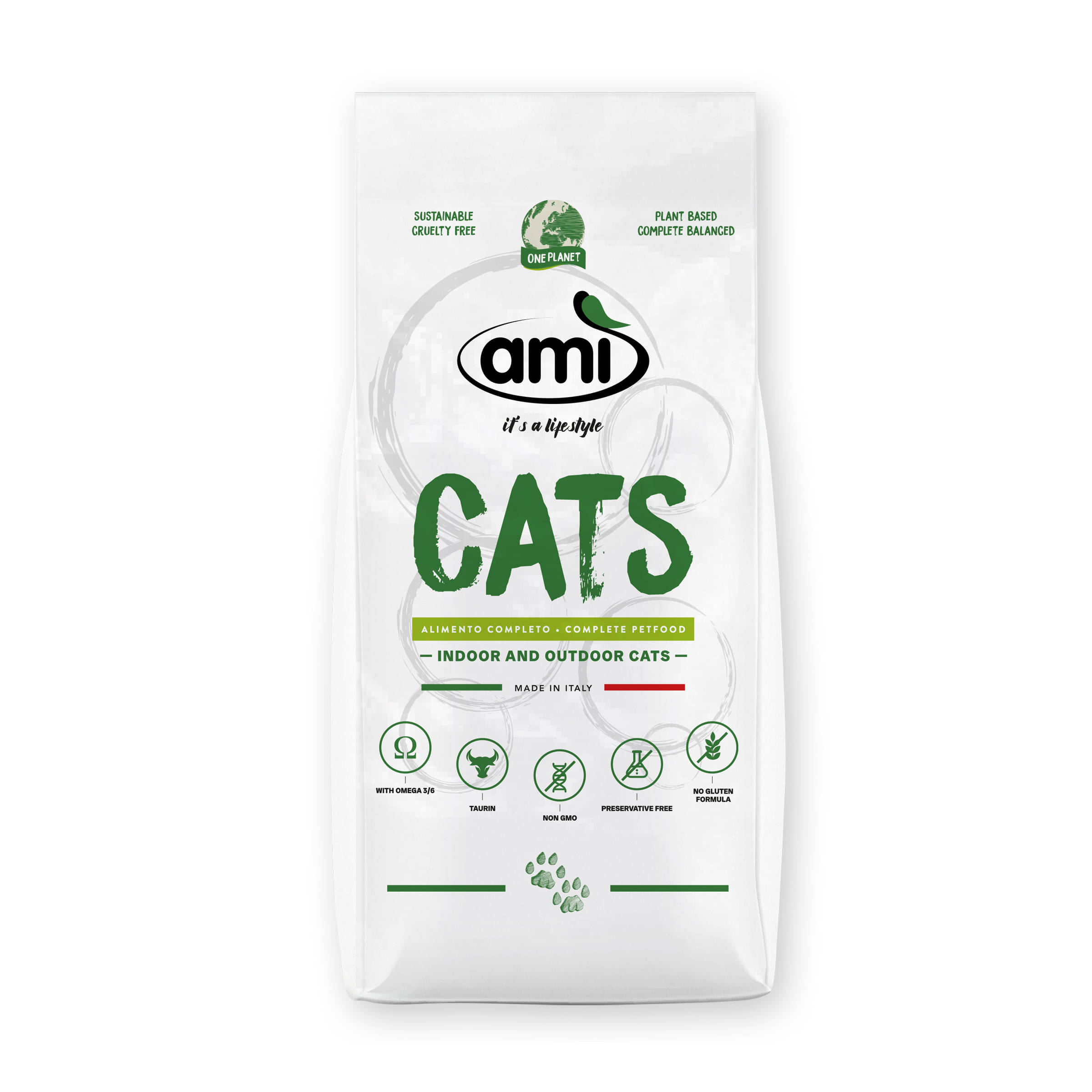 Ausgewogene, mit Taurin angereicherte Nahrung für Katzen, aus pflanzlichen Zutaten hergestellt. Erfahrungsgemäß wird Amicat hervorragend von den Tieren angenommen.