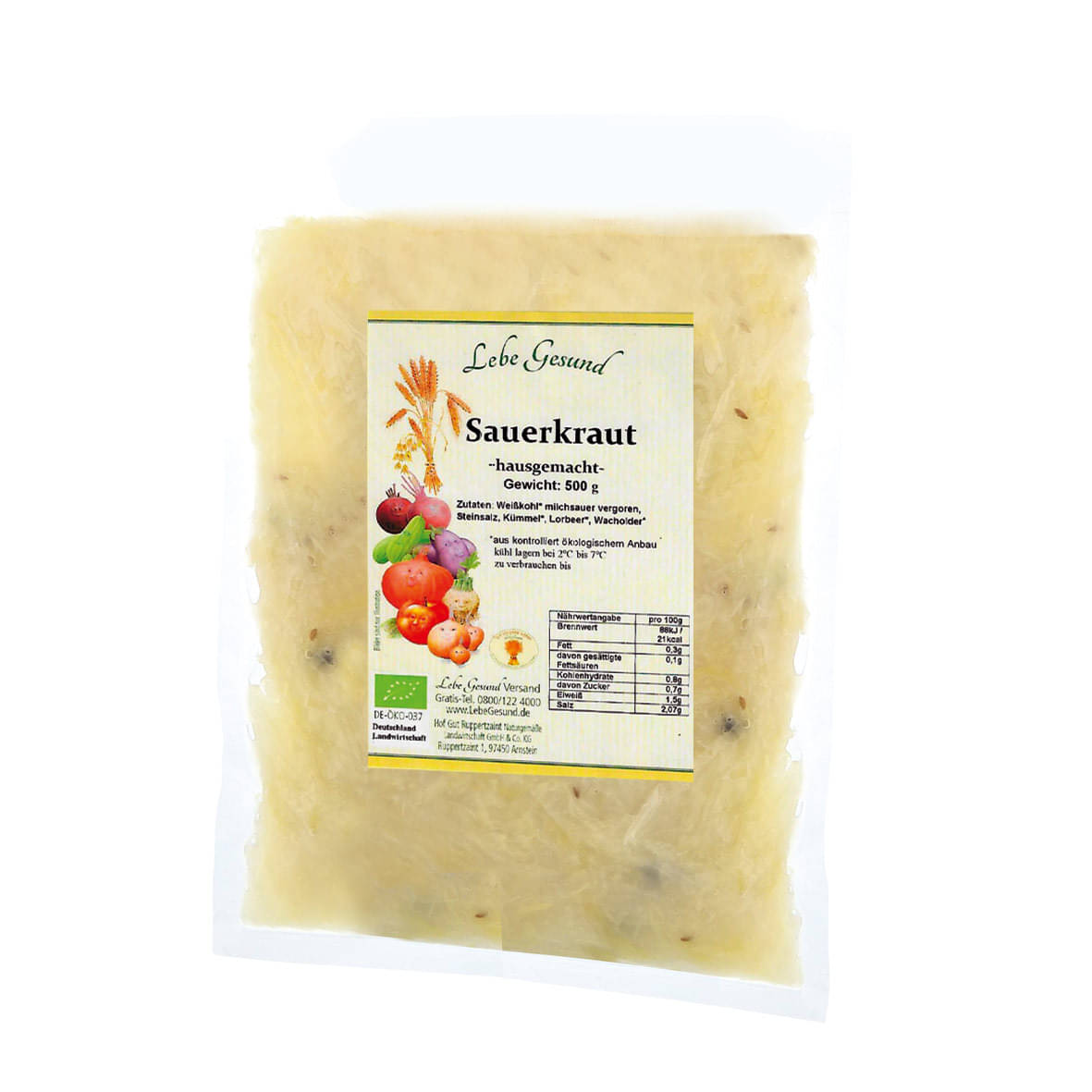 Leckeres frisches Bio-Sauerkraut in ganz besonderer Qualität erhalten Sie bei Lebe Gesund - es ist Sauerkraut aus Weißkohl von unseren gesunden Feldern.