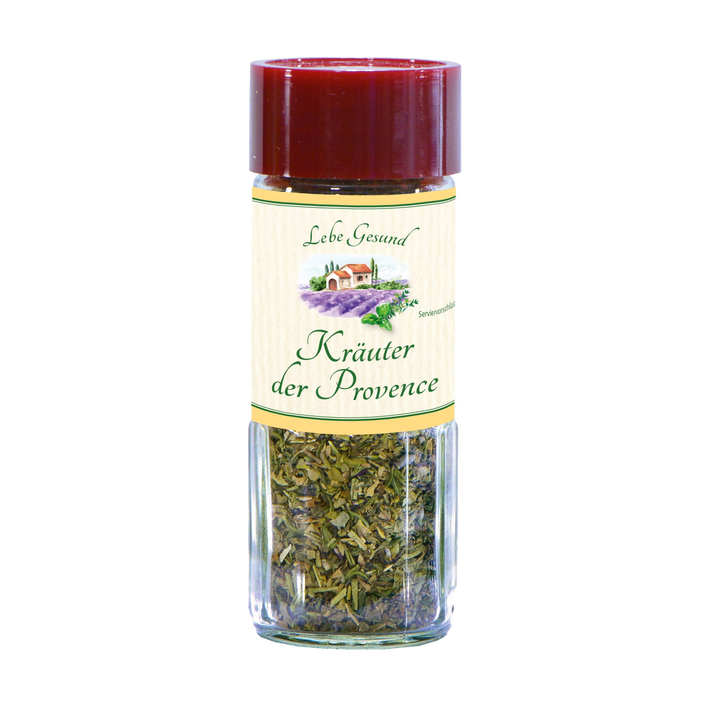 Die französischen „Herbes de Provence“ enthalten traditionell eine Mischung der wichtigsten gerebelten Kräuter, die Gerichten ein typisch mediterranes Aroma verleihen, in der Regel ergänzt durch Lavendelblüten und vereinzelt auch durch Orangenschale. Mit den „Kräutern der Provence“ von Lebe Gesund haben Sie ein praktisches Gewürz zur Hand, mit dem Sie Speisen der französischen oder italienischen Küche zubereiten können, ohne sich auf die zeitraubende Suche nach frischen Küchenkräutern machen zu müssen.