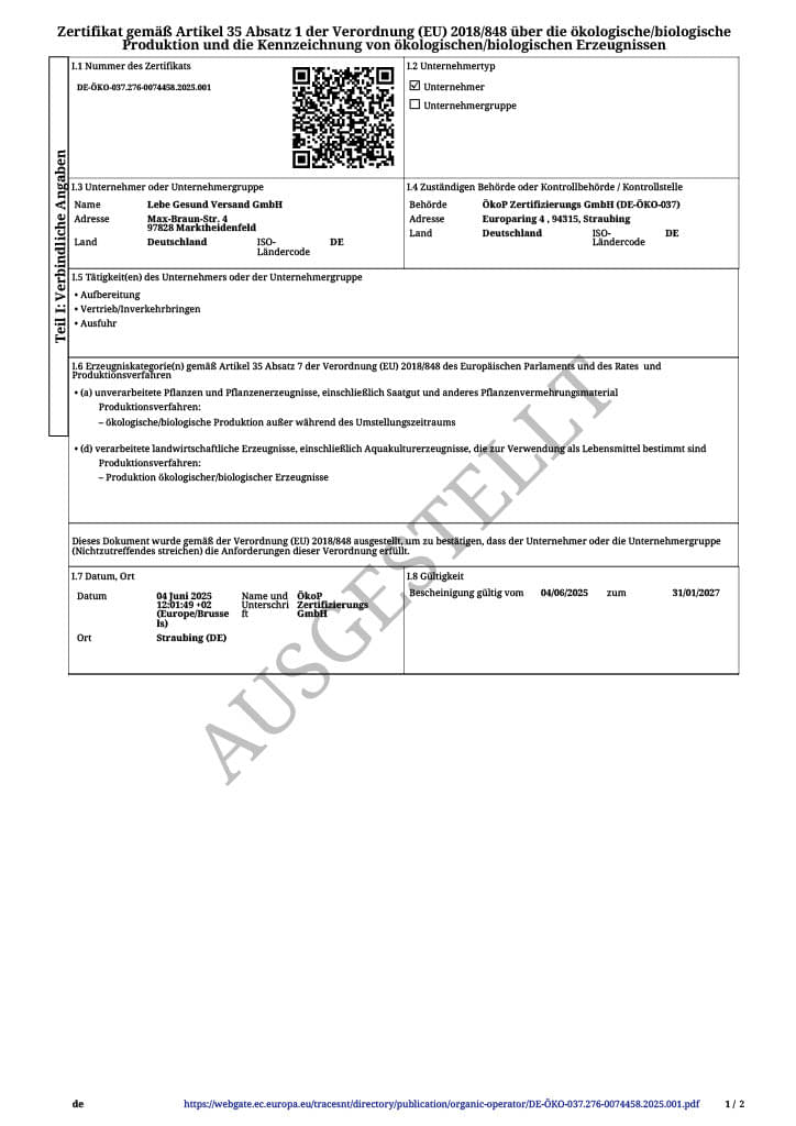 JA, ich möchte regelmäßig den Newsletter zu Lebensmitteln, Kosmetik, Büchern sowie Tier- und Pflanzenprodukten der Lebe Gesund Versand GmbH per E-Mail erhalten. Hiermit erkenne ich die