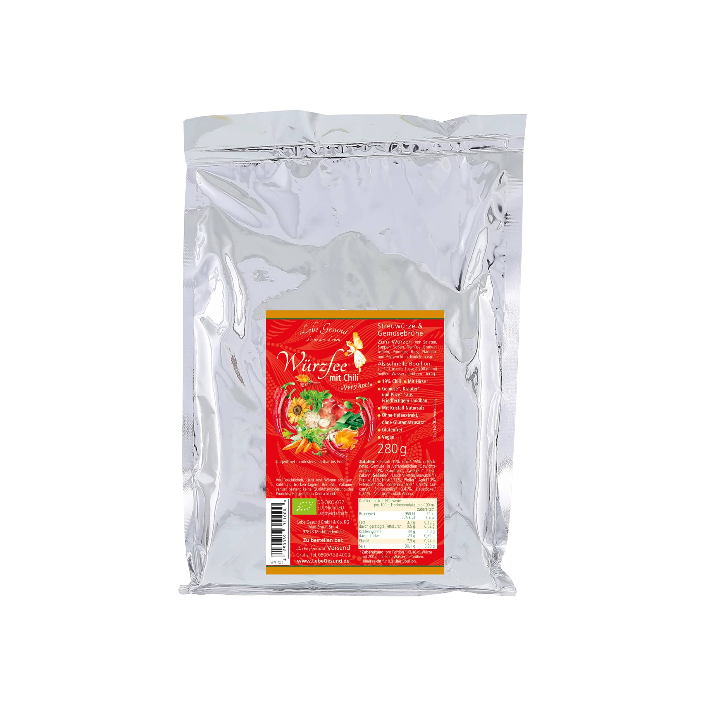 Steinsalz 31%, Chili* 19%, getrocknetes Gemüse in veränderlichen Gewichtsanteilen 13% (Karotten*, Zwiebeln*, Pastinaken*, Sellerie*, Lauch*, Petersilienwurzel*), Paprika 12%, Hirse* 11%, Pfeffer*, Äpfel* 3%, Petersilie* 2%, Sonnenblumenöl* 0,92%, Curcuma*, Shiitakepilze* 0,41%, Liebstöckel* 0,34%